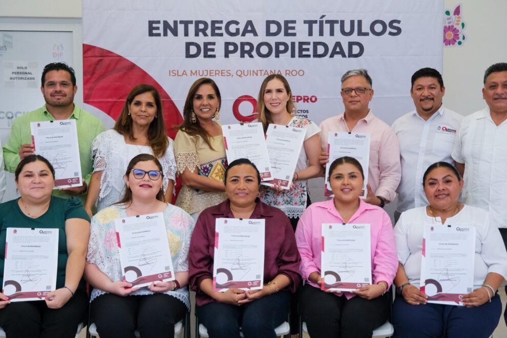 Isla Mujeres.- La Gobernadora Mara Lezama Espinosa encabezó en Isla Mujeres la entrega de nueve títulos de propiedad al Ayuntamiento, formalizando la tenencia legal de espacios públicos estratégicos que promueven el desarrollo urbano, social y recreativo en beneficio directo de más de 13 mil habitantes.