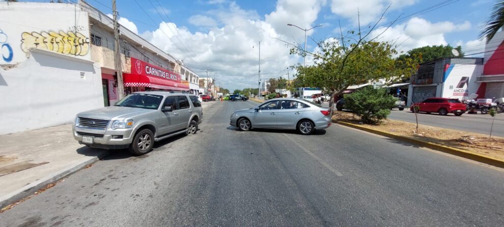 Por el impacto la camioneta montó a la banqueta y la llanta trasera del lado izquierdo se le desprendió, mientras que el vehículo quedó atravesado en los dos carriles de la vialidad.