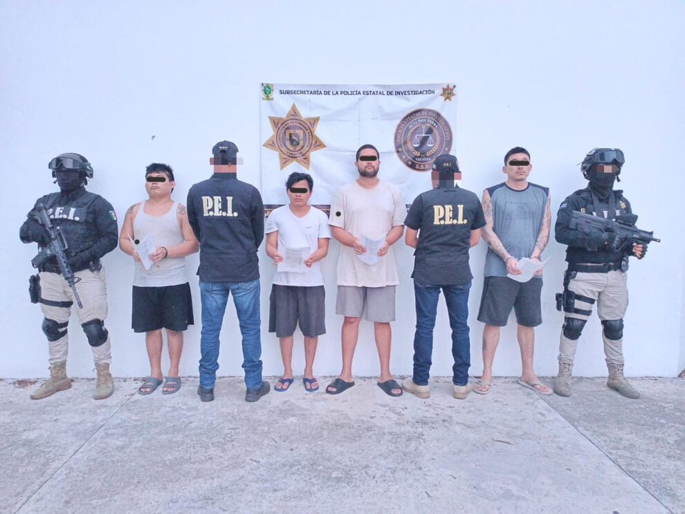 Los detenidos son Jesús Alberto “N”, alias “El Chino”, de 23 años, albañil originario de Mérida; Rigel “N”, alias “Coli”, de 23, desempleado, oriundo de Chablekal; Pedro Manuel “N”, de 28, técnico en aire acondicionado de Mérida; y Miguel Ángel “N”, alias “Padrino”, de 34 años, originario de Villahermosa, Tabasco, quien se desempeñaba como encargado del lugar.
