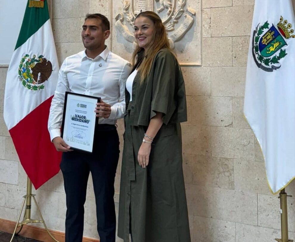 En un emotivo acto lleno de aplausos y orgullo, la alcaldesa de Mérida, Cecilia Patrón Laviada, entregó el galardón “Valor Meridano” al capitán Roger Castillo, piloto campechano que recientemente protagonizó un acto de valentía y temple al salvar la vida de más de 200 pasajeros.