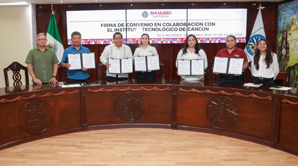 Isla Mujeres.- Con la finalidad de generar un vínculo entre estudiantado y el Ayuntamiento de Isla Mujeres, el Gobierno Municipal, que encabeza la Alcaldesa Atenea Gómez Ricalde, firmó un convenio de colaboración con el Instituto Tecnológico de Cancún.