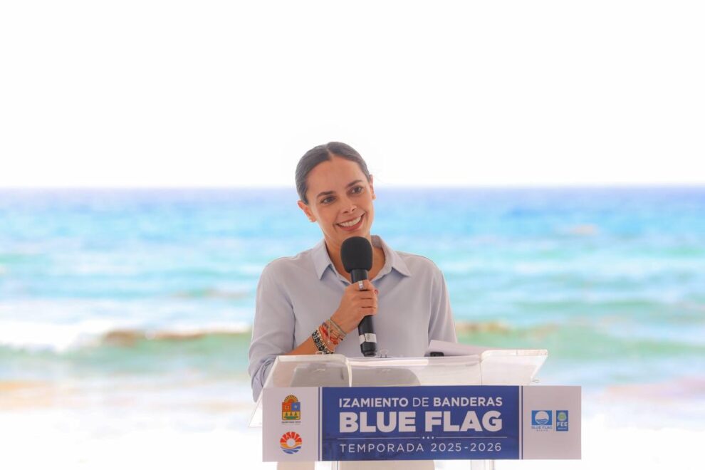 Cancún.- Cancún se convirtió en el primer destino turístico de México en izar oficialmente las banderas Blue Flag correspondientes a la temporada 2025-2026, tras la ceremonia oficial encabezada por la Gobernadora Mara Lezama y la Presidenta Municipal Ana Paty Peralta.