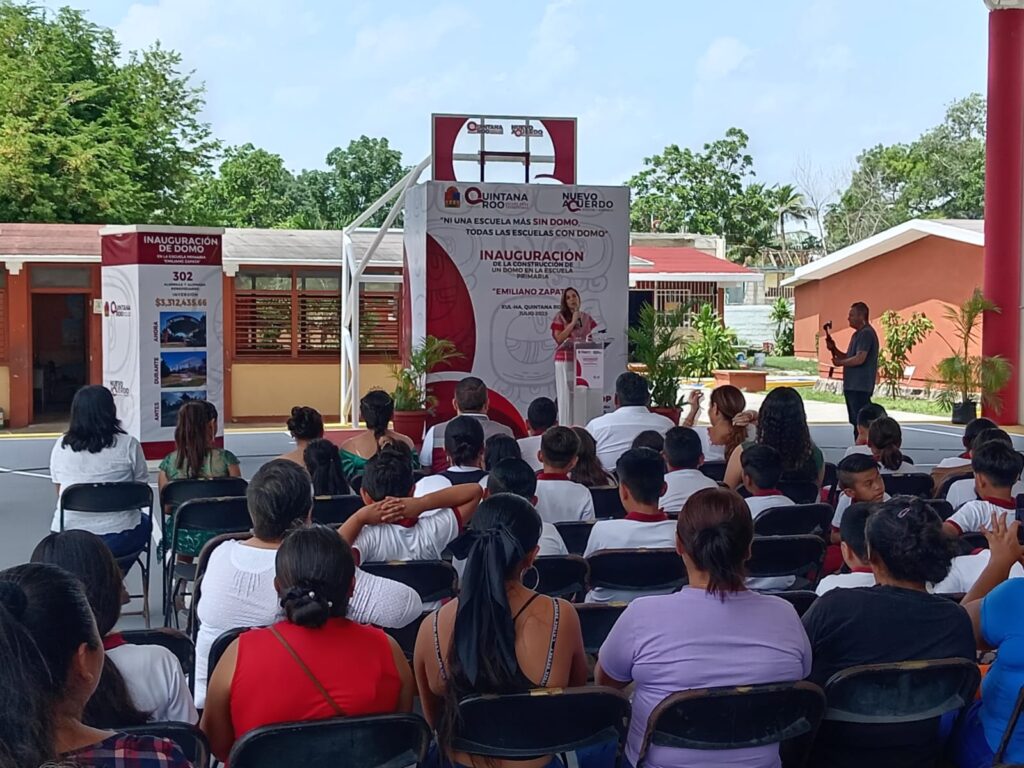 En un hecho histórico que pone fin a más de seis décadas de abandono, la gobernadora Mara Lezama Espinosa entregó el domo de la escuela primaria Emiliano Zapata, en la localidad de Xul-Ha, cumpliendo el compromiso asumido en la Audiencia Pública “La Voz del Pueblo”, donde madres, padres y docentes expresaron la necesidad urgente de un espacio digno para las y los estudiantes.