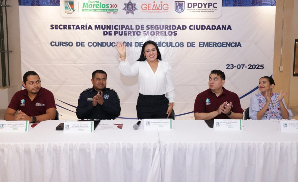 Puerto Morelos.- “La capacitación, sin duda, es lo que nos permite ser mejores servidores públicos y para eso cuenten con nosotros”, dijo hoy la presidenta municipal Blanca Merari Tziu Muñoz, al clausurar el Curso de Conducción de Vehículos de Emergencia, impartido por instructores de la Secretaría Estatal de Salud (Sesa).