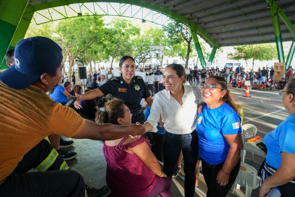Cancún.- En el marco de la Estrategia Integral para la Prevención de las Violencias y la Delincuencia “Todos por la Paz”, la Presidenta Municipal de Benito Juárez, Ana Paty Peralta, encabezó una nueva jornada del programa “Proximidad por tu Seguridad” en el domo deportivo del fraccionamiento Prado Norte, en la Supermanzana 260.