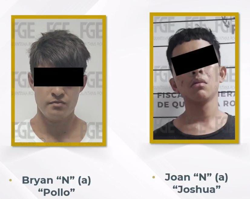 Los detenidos fueron identificados como Bryan “N” alias “Pollo”, de 25 años, y Joan y/o Joshua “N”, de 23 años, quienes fueron capturados en la supermanzana 107, cuando los detectaron a bordo de una motocicleta sin placas, la cual coincidía con la usada para el robo a una joyería de la supermanzana 58, en la Unidad Morelos.
