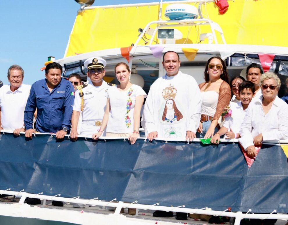 Ahí se celebró una misa oficiada por el párroco de Isla Mujeres, Rafael González Guzmán, en honor a las y los hombres de mar que han perdido la vida, y posteriormente se depositó la ofrenda floral en señal de respeto y recuerdo.