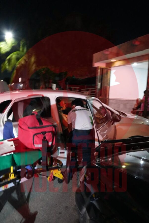 La noche de este martes ocurrió un fuerte accidente en la supermanzana 201, sobre la calle Hacienda Ciénega, donde un motociclista y un vehículo particular colisionaron y ambos conductores terminaron con severas lesiones.