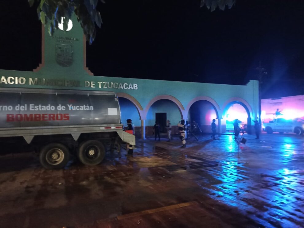 Una protesta frente al Ayuntamiento de Tzucacab por un presunto suicidio dentro de una celda terminó en caos este viernes, cuando personas ajenas a la familia del fallecido saquearon las instalaciones, golpearon a policías municipales, quemaron una camioneta y prendieron fuego a las oficinas del Palacio Municipal.