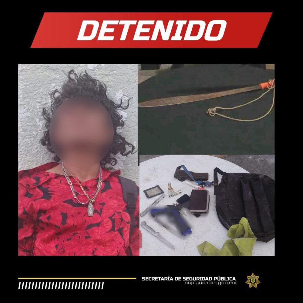 El agresor fue identificado como J.L.M., de 45 años, con domicilio en Flamboyanes. Fue detenido y trasladado para los trámites legales correspondientes. En la revisión se le aseguraron varias armas blancas, así como una réplica de arma de fuego de plástico.
