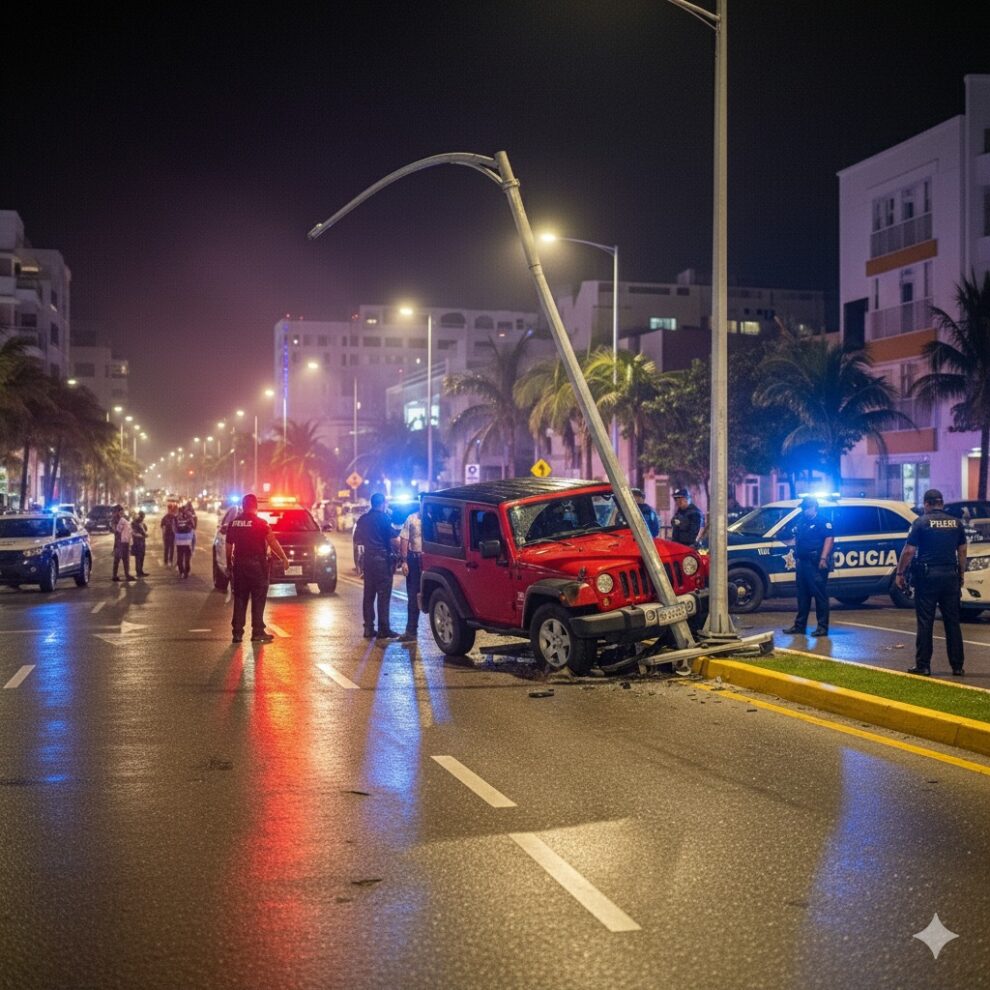 Una intensa persecución policial, que inició en la avenida 26, entre las calles 61 y 63, culminó en un aparatoso accidente después de que el conductor de una camioneta Dodge Wrangler se negara a detenerse y huyera de los agentes municipales.