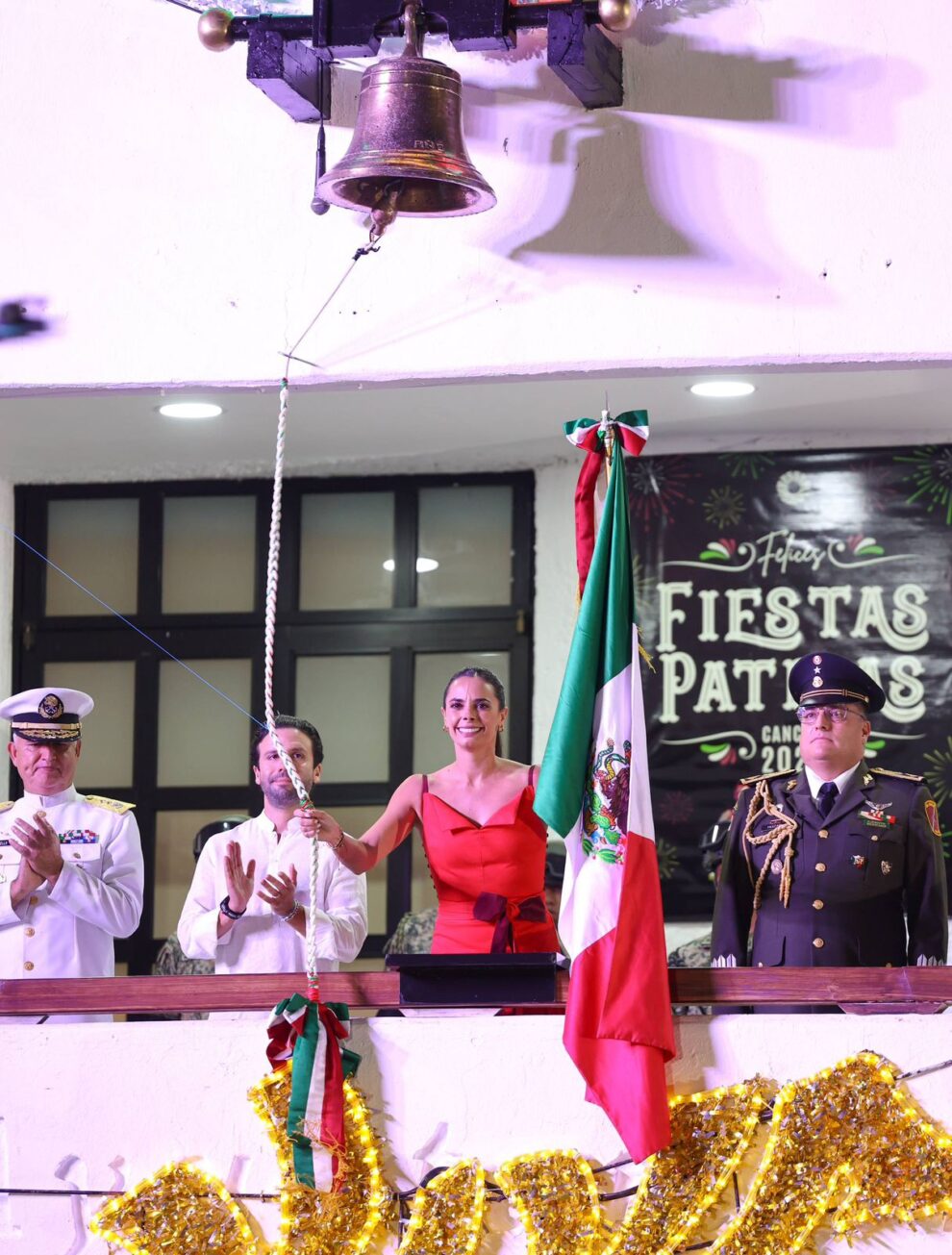 “¡Viva la Independencia de México!, ¡Vivan los héroes y heroínas que nos dieron patria!, ¡Viva Don Miguel Hidalgo y Costilla!, ¡Viva Don José María Morelos y Pavón!, ¡Viva Vicente Guerrero!, ¡Viva Ignacio Allende!, ¡Viva Aldama!, ¡ Viva la Corregidora Josefa Ortiz!, ¡Viva Leona Vicario!, ¡Viva la primera Presidenta de México!, ¡Viva la primera mujer Gobernador de Quintana Roo!, ¡Vivan las mujeres cancunenses!, ¡Que viva la patria y la justicia social!, ¡Que viva Benito Juárez!, ¡ Que viva Cancún!, ¡Que viva Quintana Roo!, ¡Viva México!”, fueron las arengas que exclamó la Alcaldesa.