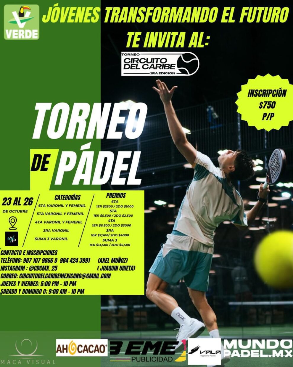 Playa del Carmen.- Fernando Muñoz Calero, coordinador y regidor del Partido Verde en Playa del Carmen, anunció la realización del Torneo de Pádel-Circuito del Caribe, un espacio diseñado para impulsar el deporte, fortalecer la sana convivencia y brindar oportunidades de desarrollo a las nuevas generaciones.