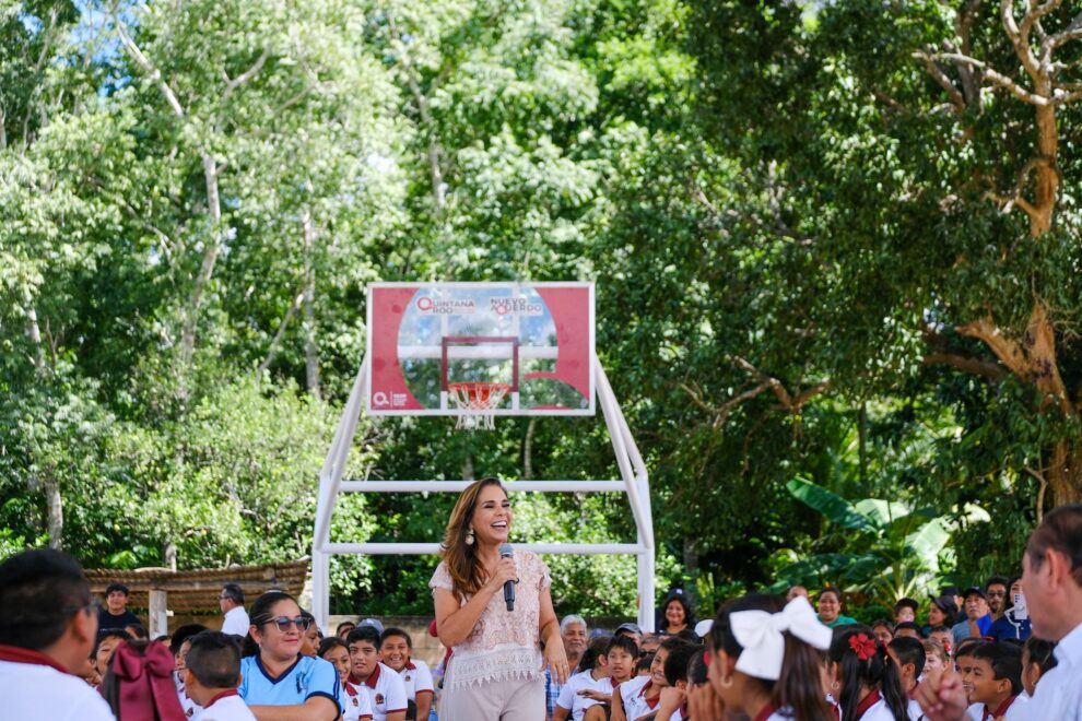 Más de 144 alumnas y alumnos de la Escuela Primaria “José María Pino Suárez” de esta comunidad estrenaron su nuevo domo en la inauguración encabezada por la gobernadora Mara Lezama Espinosa, y con el cual ahora cuentan con un espacio digno, seguro y adecuado para realizar actividades físicas, culturales y cívicas.