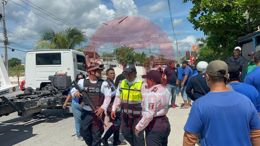 La mañana de este sábado se vivió un tenso enfrentamiento entre policías municipales y mototaxistas del sindicato Isla Cun en la entrada de la Zona Continental de Isla Mujeres.