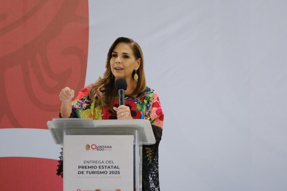 La gobernadora Mara Lezama Espinosa entregó el Premio Estatal de Turismo 2025 a la empresa comunitaria Community Tours Sian Ka’an durante un evento que se celebró en este destino turístico de clase mundial y que recibió su presidente Alberto Cen Caamal.