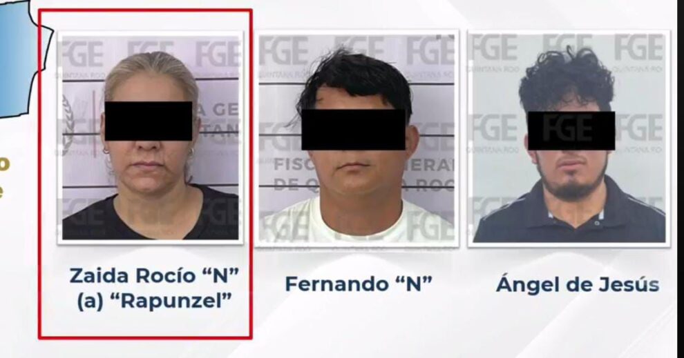 La detenida fue identificada como Zaida Rocío “N”, alias “La Rapunzel”, líder de un grupo criminal dedicado al narcomenudeo y extorsión en bares y discotecas de Cancún; fue detenida junto a dos colaboradores durante operativos conjuntos de autoridades municipales, estatales y federales.