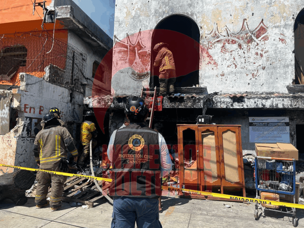 Mientras los bomberos finalizaban las labores en Puerto Cancún, otro llamado de emergencia alertó sobre un incendio en el hotel Acapulco, un edificio abandonado desde hace años en la supermanzana 67, cerca del cruce con la calle 19 (Torcasita), sobre la avenida José López Portillo.