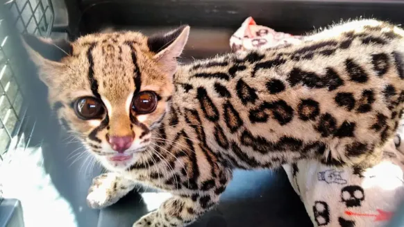 Un tigrillo (Leopardus wiedii), especie silvestre catalogada en peligro de extinción, fue rescatado por la Procuraduría Federal de Protección al Ambiente (Profepa) después de que fuera encontrado en estado crítico de salud dentro de un domicilio particular en la alcaldía Álvaro Obregón.